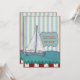 Masculine sailboat birthday. Sailboat on the wavy sea, with a blue striped background
