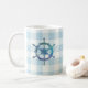 Enjoy our sailboat steering wheel tiller blue check gingham buffalo check pattern coffee mug.