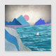 This gorgeous landscape depicts a lone sailboat in a secluded ocean cove surrouded by mountains with a stormy sky and bold textures and colours.