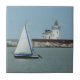 Nautical lighthouse and sailboat-photo taken in Cleveland, Ohio, summer 2014. Beautiful sailboat catches the eye as it passes the West Pierhead Lighthouse in Cleveland. Cool decorating item, use as a trivet, or add a wooden gift box and text for a great personal gift !