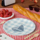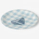 Sailboat Nautical Blue Gingham Check Pattern Paper Plate