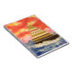 Sailboat sailing on choppy blue ocean waters with bright sun-lit sky illuminated with yellow and orange in background, making this notebook fun to use.