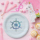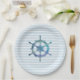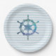 Sailboat Wheel Nautical Ocean Blue Stripe Paper Plate