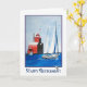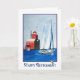 Watercolor painting of sailboat sailing past a red lighthouse for general retirement.