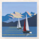 This captivating picturesque scene where sailboats gracefully glide across a serene body of water, their white sails billowing against the backdrop of majestic, snow-capped mountains. The juxtaposition of the tranquil lake and the towering peaks creates a breathtaking vista that evokes a sense of awe and adventure in the heart of nature.