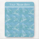 A stylish mousepad to personalise, with a nautical theme of sailing boats and seagull in white on a light sea blue background.