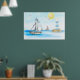 This pretty wall poster measures 36"x24". It features two sailboats floating in a deep blue ocean around a tall lighthouse. Frame it or hang it - your choice.