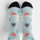 Hobby socks. Do you love sailing and life on the water? Then these socks are perfect for you! Light blue background, colorful sailboats glide by. Your favorite words in matching blue on a white ribbon around the foot. Socks for your hobby!