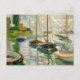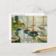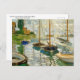 A fine art postcard with the painting, Sailboats on the Seine at Petit-Gennevilliers (1874) by Claude Monet (1840-1926). A landscape of boats moored at the beach on the Seine River in France.