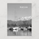 A black and white postcard with a photograph of sailboats docked in the marina at Utah Lake State Park in Provo Utah.