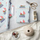 Unique sailing themed holiday gift wrap featuring Santa in a sailboat pattern.