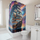 A tall ship under full sail glides though a calm sea under a colourful, magical sky of galaxies, planets, and stars. Beautiful, dreamy image.