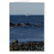 This is the Atlantic Ocean off the coast of Ogunquit, Maine. The sailboat sails near the typical rocky shoreline.