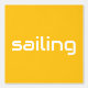 This sporty, modern design features horizontal white sleek SAILING text against a bright yellow orange background. The text and colours in this design can be personalised.