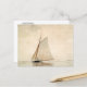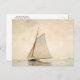 A fine art postcard with the realist painting, Sailing off Gloucester (1880), by the American artist Winslow Homer (1836-1910). A seascape of a man sailing a yacht in the harbour.