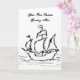 Looking for a black and white card with a nautical theme? This could be the thing for you. You can personalise this cool sailing ship greetings card to have your own message on the front, the custom text is in a black script font. The picture in this design is a digital drawing of a pirate galleon with an inky sketch style. The illustration is of an old fashioned vessel, which has sails and masts, under sail at sea.