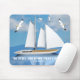 Sailing Yacht on Calm Water with Soaring Seagulls Mouse Mat