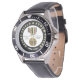 My husband loves the watch, he likes the dial, the graphics, the band, and it keeps perfect time.