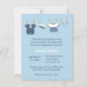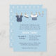 A cute nautical themed baby shower invitation with various little sailor baby clothes hanging on the clothesline! The baby clothes include a sailor baby romper, a sailor cap with anchor logo, a matching nautical colour tee and a toddler piece of underwear with anchor logo. Great for mummy to be who is expecting a baby boy. On the reverse page is a blue and white anchor pattern. Personalise easily with party details.