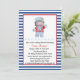 This cute baby shower invitation for boy features little hippo in sailor suit and hat. Border is blue and white stripes. Displayed as a baby shower invitation, but also perfect for a birthday party. Graphics/www.bearnecessitiesscraps.com, www.digiwebstudio.com