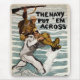 Vintage poster showing a sailor wading as he carries a soldier on his shoulder. The Navy put 'em across The service for travel and training, ages 17 to 35