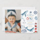 Sailor Watercolor Whale Sea 1st Birthday Invitation