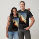 I give wanted to give this a 4 instead of a 5 because these Basic DARK T0shirts run unexpectedly SLIM or Narrow. Which is great if you do not have a potbelly, but I have a paunch. It isn't the shirt's fault that I've got a beer belly. The design and shirt itself is a quality cotton shirt. The color is more of a deep purple, but still a very pretty color. The Basic DARK T-shirts run a bit SLIMMER than the Basic Ts. The neck is a fraction narrower (or seems to be narrower) also. I'm a paunchy middle-aged woman and my neck is 12 inches (31cm) thick and the neckline fell about the same as in the photo of the man, and I had the desire to tug it a bit. So if you're a thick necked man or like loose shirts, be aware these are slimmer shirts. Once I get rid of my lockdown paunch it'll look great. The shirt washed well in cold water with no apparent bleeding. We don't have a dryer, so it hung dry. Did not shrink. Love the colors and the design. The design looks smaller on my shirt than it does on the model on-line. But still, it looks good on the shirt. The printing looks as it does on the model, just the size seems fractionally smaller.  Washed garment in cold water, hung dry and design appeared unaffected.
