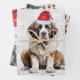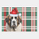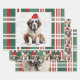 An adorable Saint Bernard dog is ready for the holiday season with his Santa hat. This cute Christmas dog is paired with a red and green holiday plaid on this set of gift wrap for the dog lover.