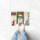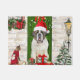 Saint Bernard Dog Christmas sitting outside decorated home with Christmas wreath, Christmas tree is a perfect Christmas gift idea for dog lovers.