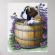 Bring home the timeless allure of the Saint Bernard dog with our captivating poster featuring this beloved breed sitting gracefully within a rustic wooden barrel, embodying the epitome of loyalty, strength and companionship.