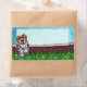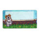 Cute St. Bernard dog customisable shipping label features a cute dog from the front standing in a grassy yard with a brick wall and blue textured sky painted by our talented children's book illustrator Traci Van Wagoner (www.tracivanwagoner.com). With a transparent white field to write addressees on, these are unique labels for animal and dog lovers of all ages. Get a new best friend today and send out all your mail with a unique St. Bernard dog label. Check out our store and get a complete stationery set of dog fun stuff including a matching return label with the Saint Bernard dog's behind, backside, butt!