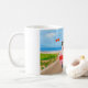 I like to buy and review my own work to ensure you get an outstanding product and I’m happy to give the Primary Colours Beach Football Mug 5 stars because it meets my expectations completely. Pleased with it I am. Zazzle mugs are well fabricated, microwave and dishwasher safe. And this yellow red and blue panoramic wraparound motif is sealed with a durable and sparkling Orca polished gloss glaze finish. It’ll never rub off! The size and energy of two jostling figures and a burly goal keeper fit the mug's circular shape well. There's momentum in the carousel effect as the two jostling figures repeat and move right around the mug and meet a burly goal keeper. Big sharp original images precisely drawn and delicately captured in blue and red with plenty of bright yellow! An ideal gift for anyone who plays ball! A fun gift for all beachball and football fans. A pair with the Retro Grey-Grain Beachball Player Mug. Available in two sizes and several styles including Black Ringer, Travelling, and Stern. Go have a peek!