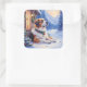 Saint Bernard Snowy Mountain Lodge Christmas Dog Square Sticker