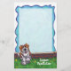 Cute St Bernard dog personalised stationery featuring our original art of a tan and white dog from our Animal Parade line with a colourful blue textured background painted by Traci Van Wagoner (www.tracivanwagoner.com). With a transparent white field for writing your message, this dog stationery is perfect for animal and dog lovers of all ages. Check out our store and collect all our unique items in our St. Bernard Dog Stationery Set.