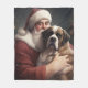 Saint Bernard With Santa Claus Festive Christmas Fleece Blanket