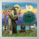 Saint Francis, a beloved figure that crosses denominational lines, is the patron saint of animals. The figure shown here was adapted from a 14th century masterpiece by Giotto and inserted into an original background, here shown with a black and tan Cocker Spaniel.