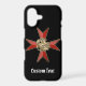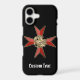 Saint George slaying dragon over Maltese cross. Custom background color. Custom text.