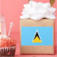 The Saint Lucian flag has a light blue background with black, white and yellow triangular symbols in the centre. It was adopted in 1967, and has a 1:2 ratio.