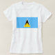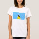The front of this t-shirt boldly displays the Saint Lucian flag with its distinctive yellow triangle on a white fimbriated black triangle on a light blue background. This is matched at the back by an attractive map of Saint Lucia.