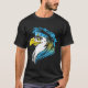 I give wanted to give this a 4 instead of a 5 because these Basic DARK T0shirts run unexpectedly SLIM or Narrow. Which is great if you do not have a potbelly, but I have a paunch. It isn't the shirt's fault that I've got a beer belly. The design and shirt itself is a quality cotton shirt. The color is more of a deep purple, but still a very pretty color. The Basic DARK T-shirts run a bit SLIMMER than the Basic Ts. The neck is a fraction narrower (or seems to be narrower) also. I'm a paunchy middle-aged woman and my neck is 12 inches (31cm) thick and the neckline fell about the same as in the photo of the man, and I had the desire to tug it a bit. So if you're a thick necked man or like loose shirts, be aware these are slimmer shirts. Once I get rid of my lockdown paunch it'll look great. The shirt washed well in cold water with no apparent bleeding. We don't have a dryer, so it hung dry. Did not shrink. Love the colors and the design. The design looks smaller on my shirt than it does on the model on-line. But still, it looks good on the shirt. The printing looks as it does on the model, just the size seems fractionally smaller. Washed garment in cold water, hung dry and design appeared unaffected.