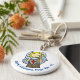 A cute and smiling Saint Michael key chain with the words "Saint Michael, Pray for us!" on it!