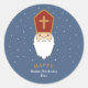 A Sticker for Saint Nicholas Day (who is celebrating at the beginning of December in Europe) with snow on a blue background and customisable texts.