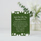 Inspirational Saint Patrick's Day Blessing postcard depicts a dark green background with white shamrocks. It features the beloved Irish Blessing. "MAY THE ROAD rise up to meet you. MAY THE WIND be always at your back. MAY THE SUN shine warm upon your face; the rains fall soft upon your fields and until we meet again, MAY GOD HOLD YOU in the palm of His hand."~