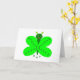 This fun Saint Patrick's Day card features a cartoon of a cheerful butterfly with a dark green body and fluorescent green wings. On the wings is darker green text that says “Happy St Pats”. This friendly little butterfly is designed to appeal to all ages and is ready and waiting to wish someone a happy St Patrick’s Day. There is a customisable greeting on the inside of the card.