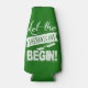 Custom green beer beverage coolers. Keep your beer nice and icy with a comical St Paddys Day wrap that can also help you keep tabs on your drink. Beer stays frosty and cold, but your hand stays nice and warm and that is important. A freezing cold hand might not be the thing you want to offer up to a potential date. So, see? We're also helping you score.