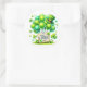 Sticker is shown in a festive Saint Patrick's Day print.