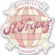 Saint St Tropez France, Retro Vintage Design featuring a disco ball in pink, and apricot peach hues on white background. This beautiful sticker is a perfect gift, souvenir or decor item for Saint St Tropez residents, visitors, tourists or fans.