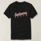 I give wanted to give this a 4 instead of a 5 because these Basic DARK T0shirts run unexpectedly SLIM or Narrow. Which is great if you do not have a potbelly, but I have a paunch. It isn't the shirt's fault that I've got a beer belly. The design and shirt itself is a quality cotton shirt. The color is more of a deep purple, but still a very pretty color. The Basic DARK T-shirts run a bit SLIMMER than the Basic Ts. The neck is a fraction narrower (or seems to be narrower) also. I'm a paunchy middle-aged woman and my neck is 12 inches (31cm) thick and the neckline fell about the same as in the photo of the man, and I had the desire to tug it a bit. So if you're a thick necked man or like loose shirts, be aware these are slimmer shirts. Once I get rid of my lockdown paunch it'll look great. The shirt washed well in cold water with no apparent bleeding. We don't have a dryer, so it hung dry. Did not shrink. Love the colors and the design. The design looks smaller on my shirt than it does on the model on-line. But still, it looks good on the shirt. The printing looks as it does on the model, just the size seems fractionally smaller. Washed garment in cold water, hung dry and design appeared unaffected.