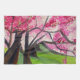 with original art design from watercolour painting by Sacha Grossel of Japanese Sakura Cherry Blossom landscape with pink and white Cherry Blossom flowers in a Japanese park with bright blue sky. This detailed, bright colourful and beautiful design is inspired by Japanese art themes for botanical flower lovers everywhere