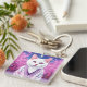 Introducing our delightful Keychain featuring whimsical fantasy art: a jazzy kitty adorned in a stylish cardigan, gallivanting among blooming cherry trees in full springtime splendour.